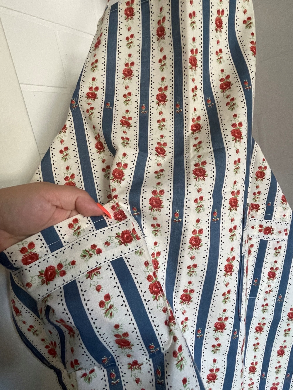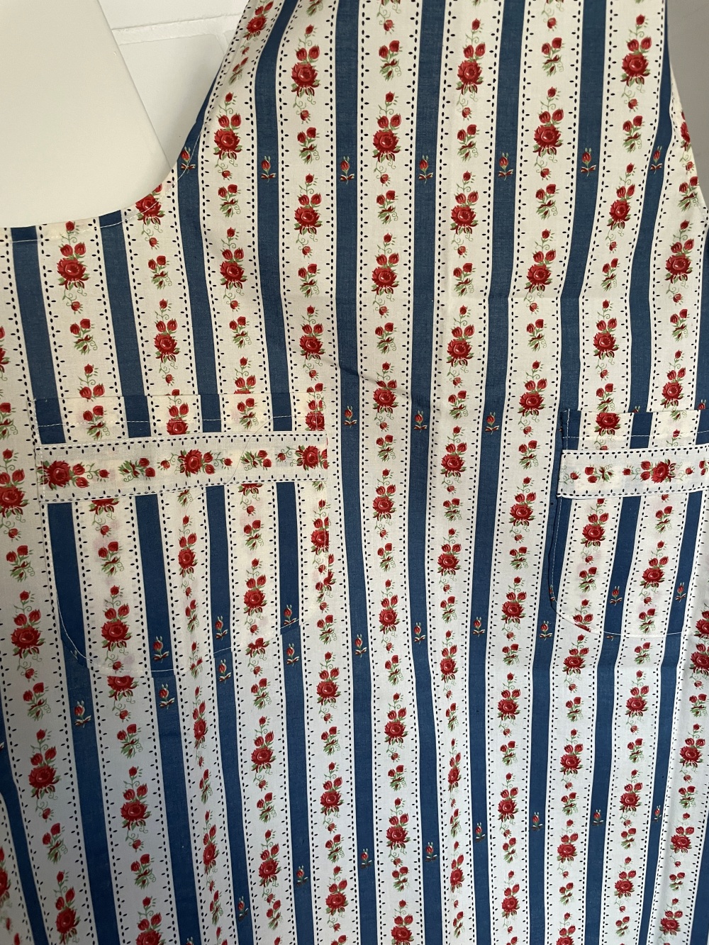 Wunderschöne, in Handarbeit gefertigte Schürze. Mit zwei Eingriffstaschen vorne. Im Nacken und in der Hüfte zu binden.