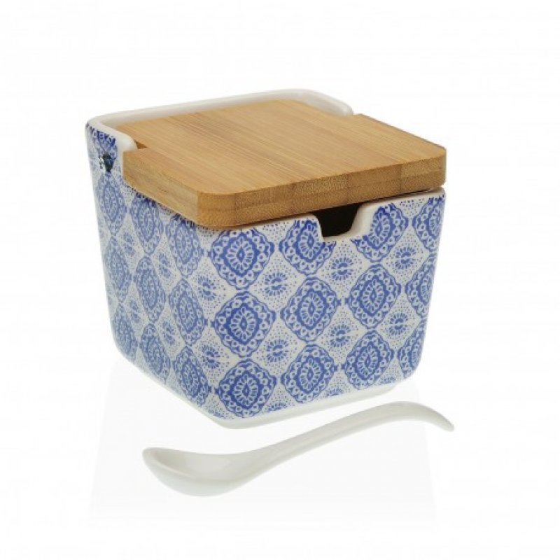 Zuckerdose ABELA mit blau-weißem Muster, eckig